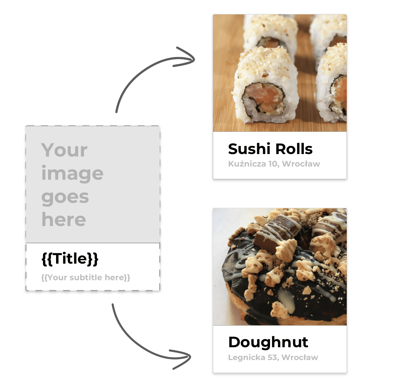 Thanks to generating marketing images in bulk, you can automatize the process and save your time. Instead of creating and editing each image individually, you can generate images in bulk from a simple data spreadsheet.
